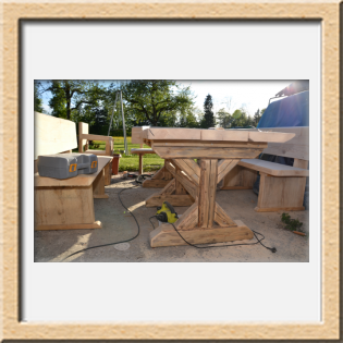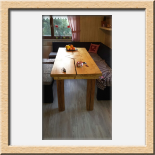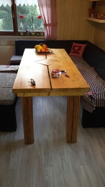 Tisch aus Holzbalken vom alten Schulhaus in Sulzberg(A)