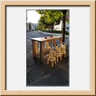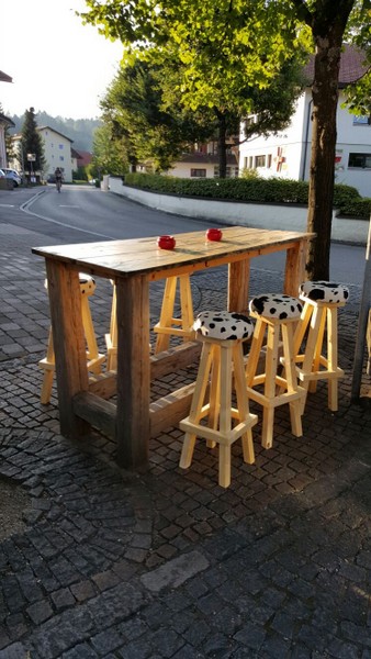 Bar, Unterbau aus alten Balken vom alten Schulhaus in Sulzberg (A)Tischblatt aus zwei Kirschbaumbrettern